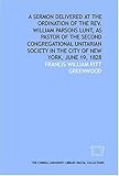 4. A sermon delivered at the ordination of the Rev. William Parsons Lunt, as pastor of the Second Congregational Unitarian Society in the City of New York, June 19, 1828 by Francis William Pitt Greenwood, 1828-01-01
