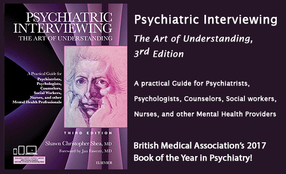 | 23. BookHq Psychiatric InterviewingThe Art Of Understanding By Shawn by Shawn christopher shea Meg Maloney (Illustrator) Foreword by Leston Havens Editionn/a Pages759 Book FormatTextbook Hardcover, ISBN0721670113 http://www.bookhq.com/compare/0721670113.html |